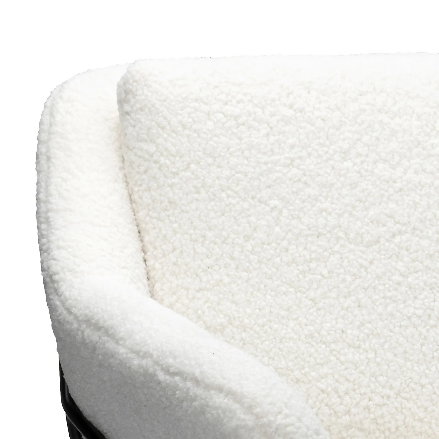 The modern design and clean lines of the Evelyn chair make it the perfect accent armchair for you living space or bedroom. Upholstered in soft boucle fabric and made with a sturdy metal frame, the Evelyn chair is a comfortable seat to relax in.