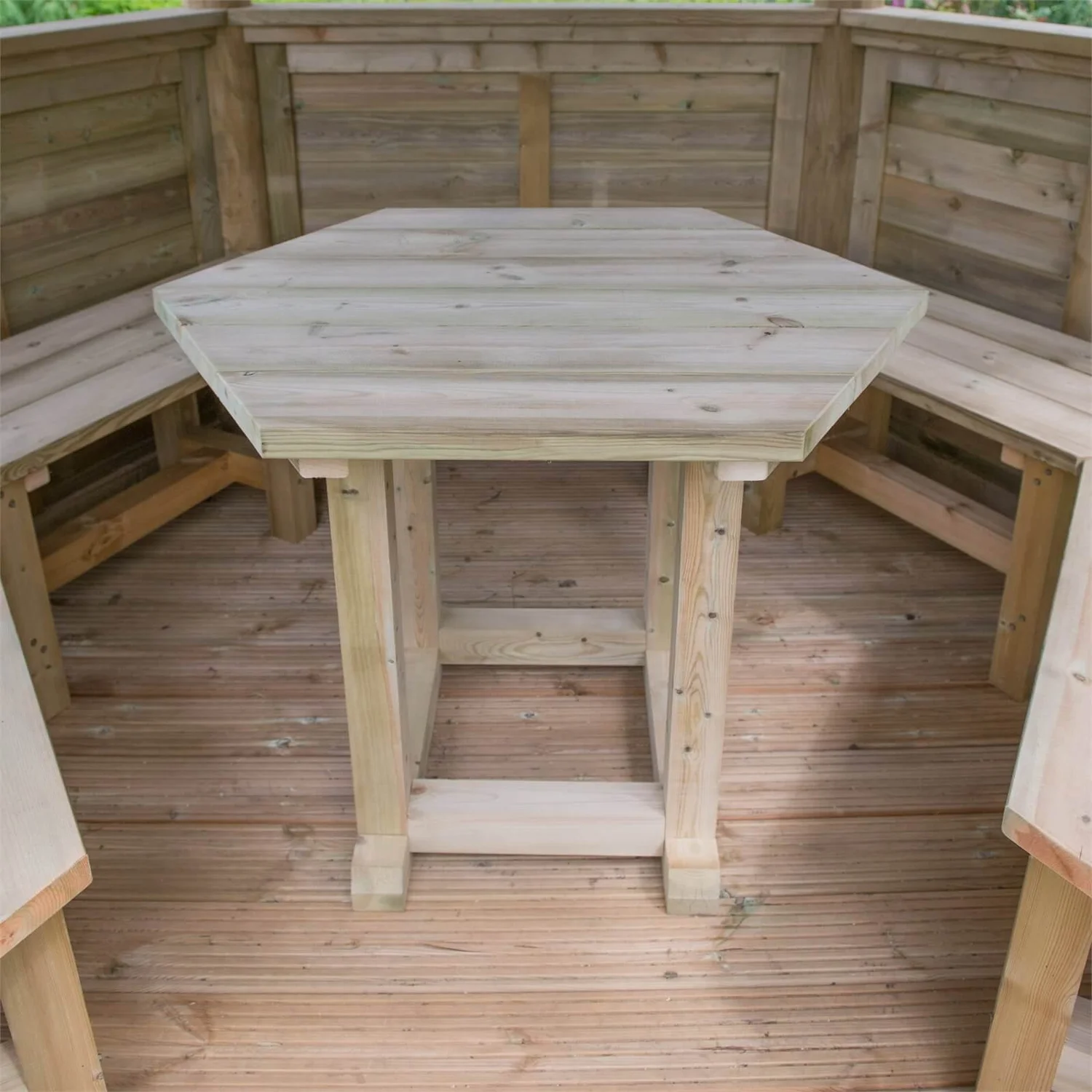 - The 3.6m furnished hexagonal wooden garden gazebo with thatched roof is perfect for outdoor dining