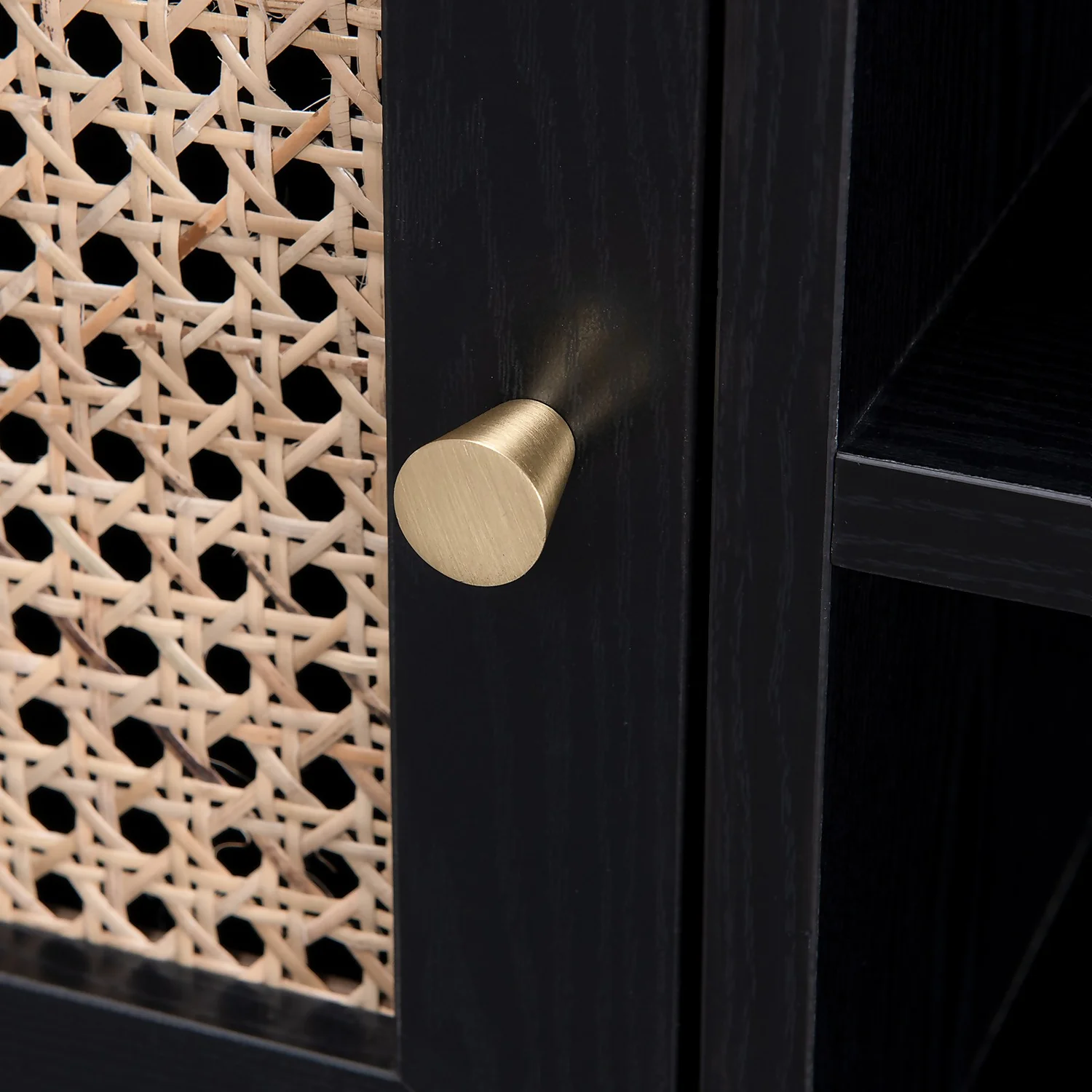 With its charming aesthetic, Kubu is a bohemian beauty. Retro woven cane panels meet hardwearing black textured wood effect finish, making this range a visual treat. Our Kubu TV stand has ample surface space for your television screen, with 2 shelves for your entertainment boxes to sit atop. Video games, cables, and remote controls can all be hidden away in the cupboard. It’s raised from the ground on solid tapered legs. The laidback appeal of the boho look is great for the lounge, creating relaxing vibes that are perfect for your chill-out area.