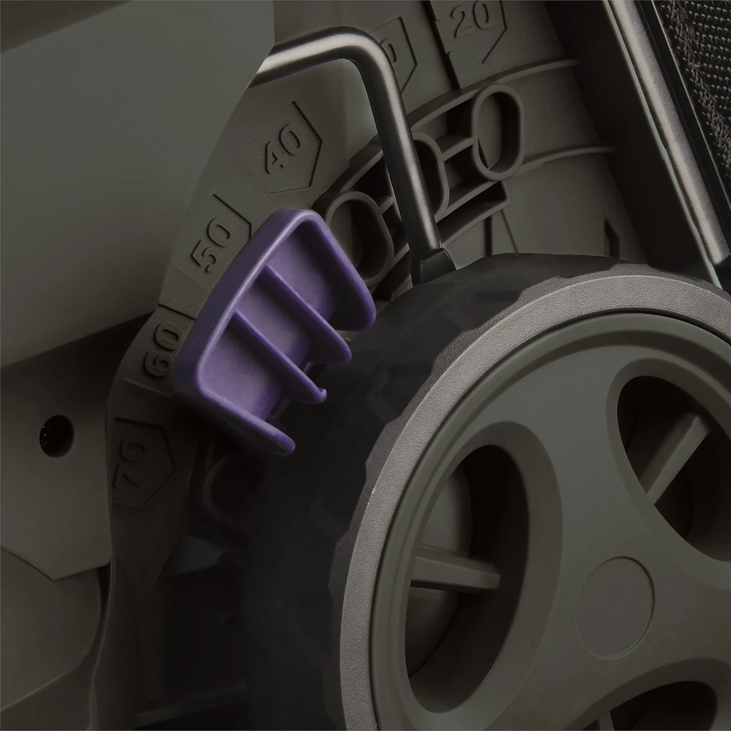 All Powerbase electric rotary lawnmowers include patented Turbo Drive and Air-Lift technologies. Turbo Drive continuously ensures the correct amount of torque is applied to ensure an even cut, even through any thicker clumps of grass. Air-lift, inspired by wind tunnel testing and using a winged carbon steel blade, helps the cuttings to reach the back of the collection bag, enabling a high degree of grass collection. This mower includes Powerbase patented ‘Ready-bag’. The bag is ready to attach straight out of the box, and when not in use the bag collapses to almost be flat – perfect for easy storing.